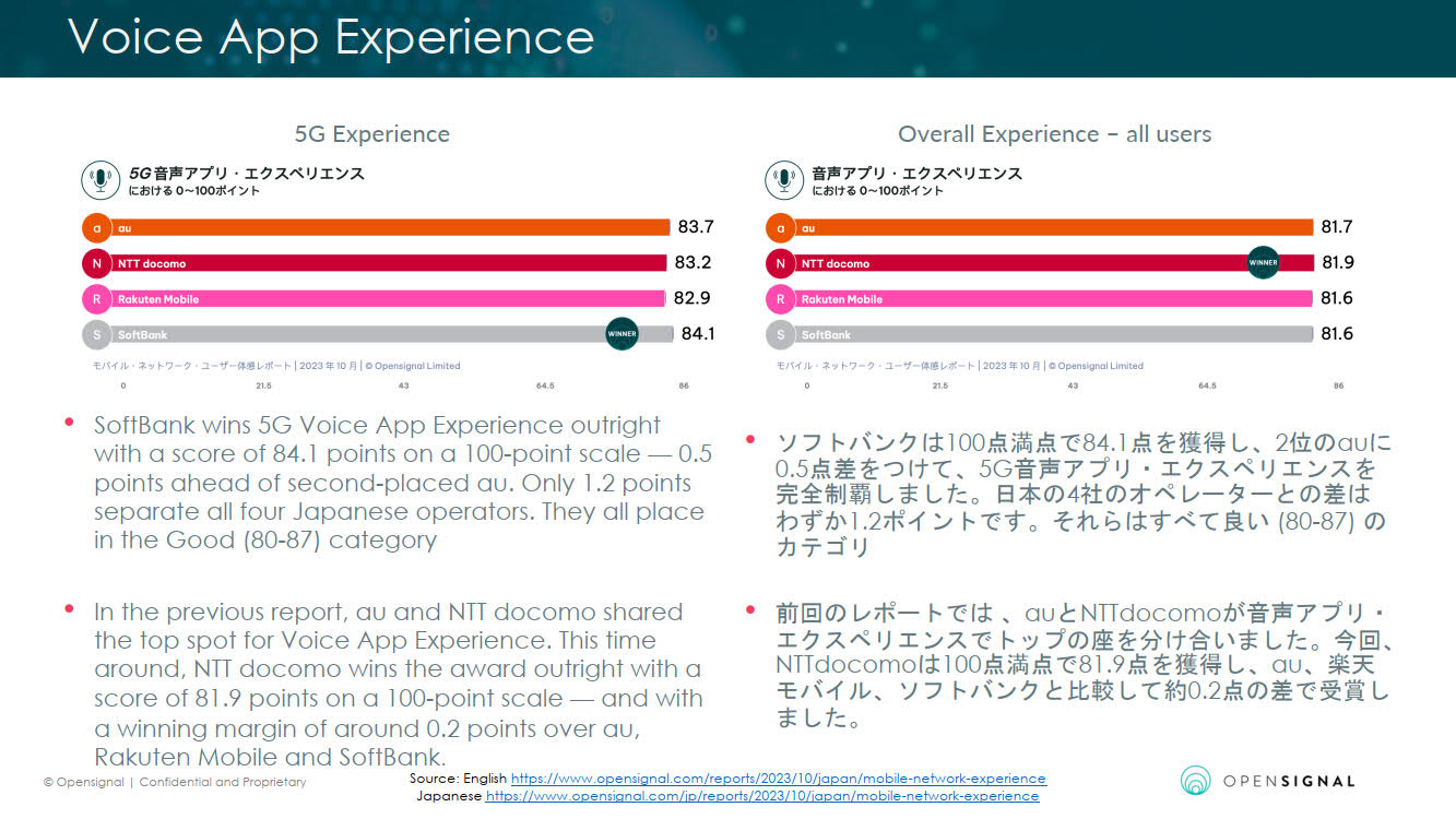 • Opensignalのユーザー体験レポート――楽天モバイルがソフトバンクと肩を並べる7部門、auは5部門で受賞