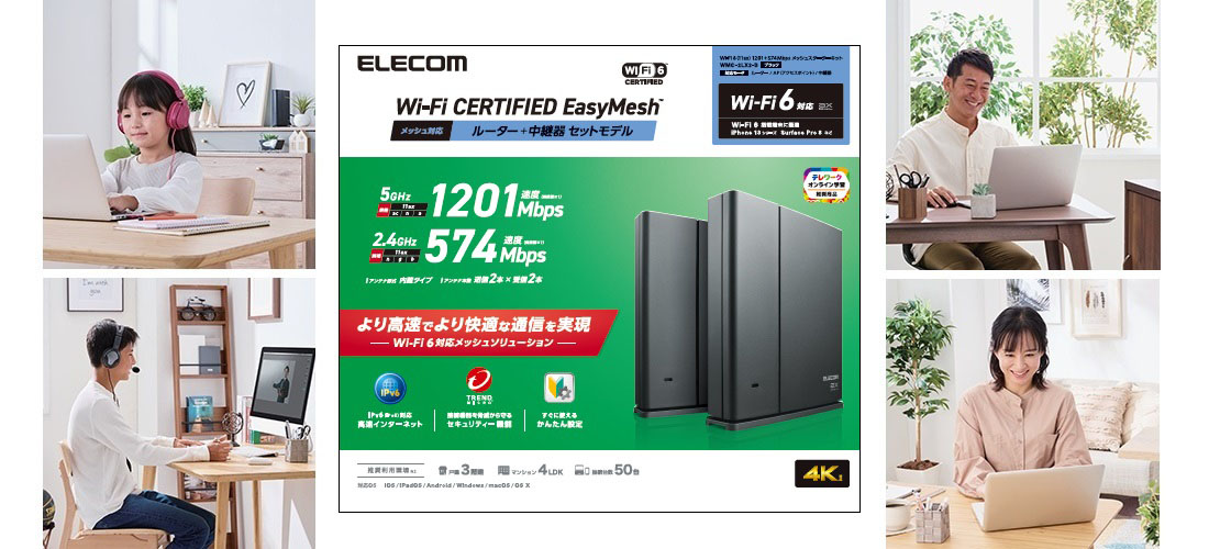 エレコムから無線LAN中継機「WTC-C1167GC」、テレワークやオンライン授業の環境改善に