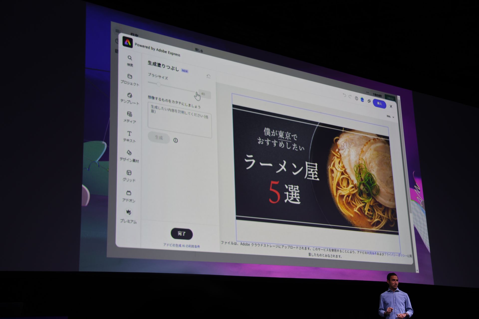モバイル版「Adobe Express」で、生成AI「Firefly」が利用できるように