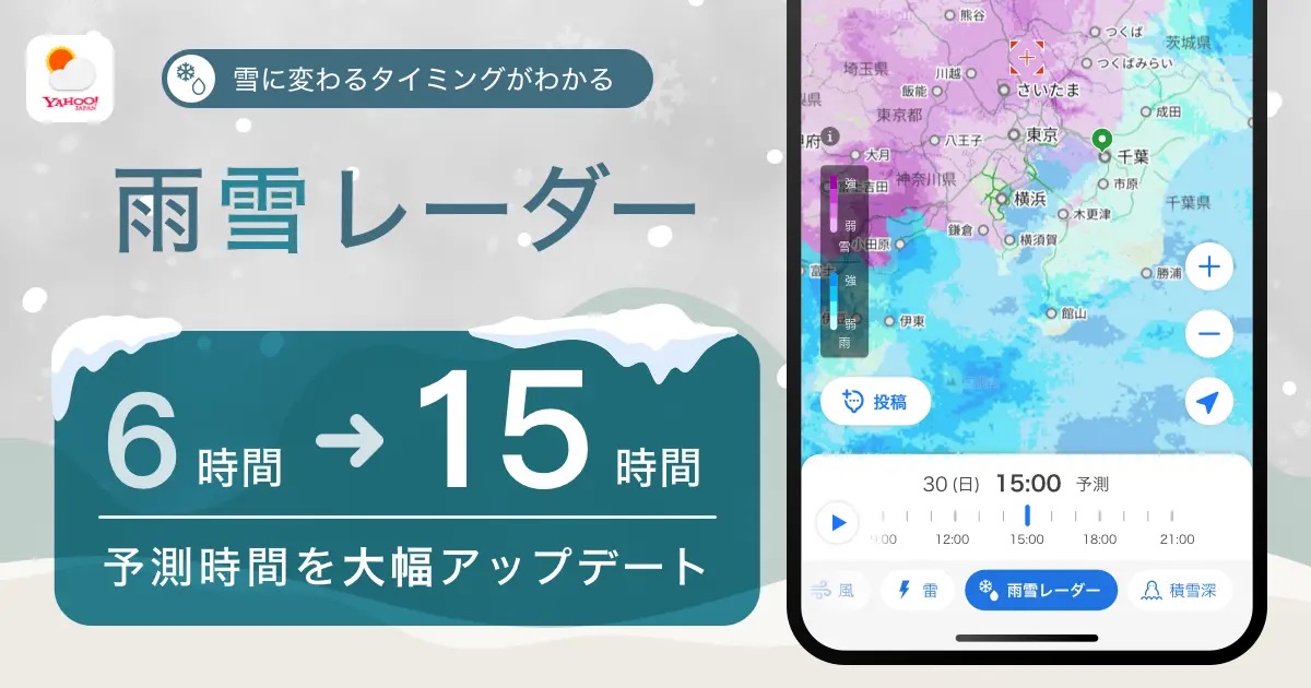 「Yahoo!天気」に雨雪レーダー、最大6時間先まで表示