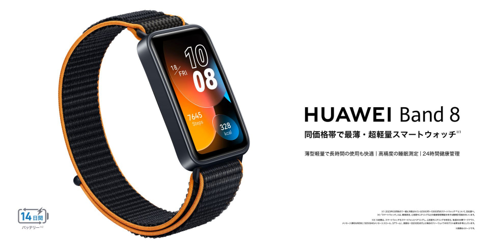 ファーウェイから軽量スマートバンド「HUAWEI Band 8」、睡眠モニタリングが進化