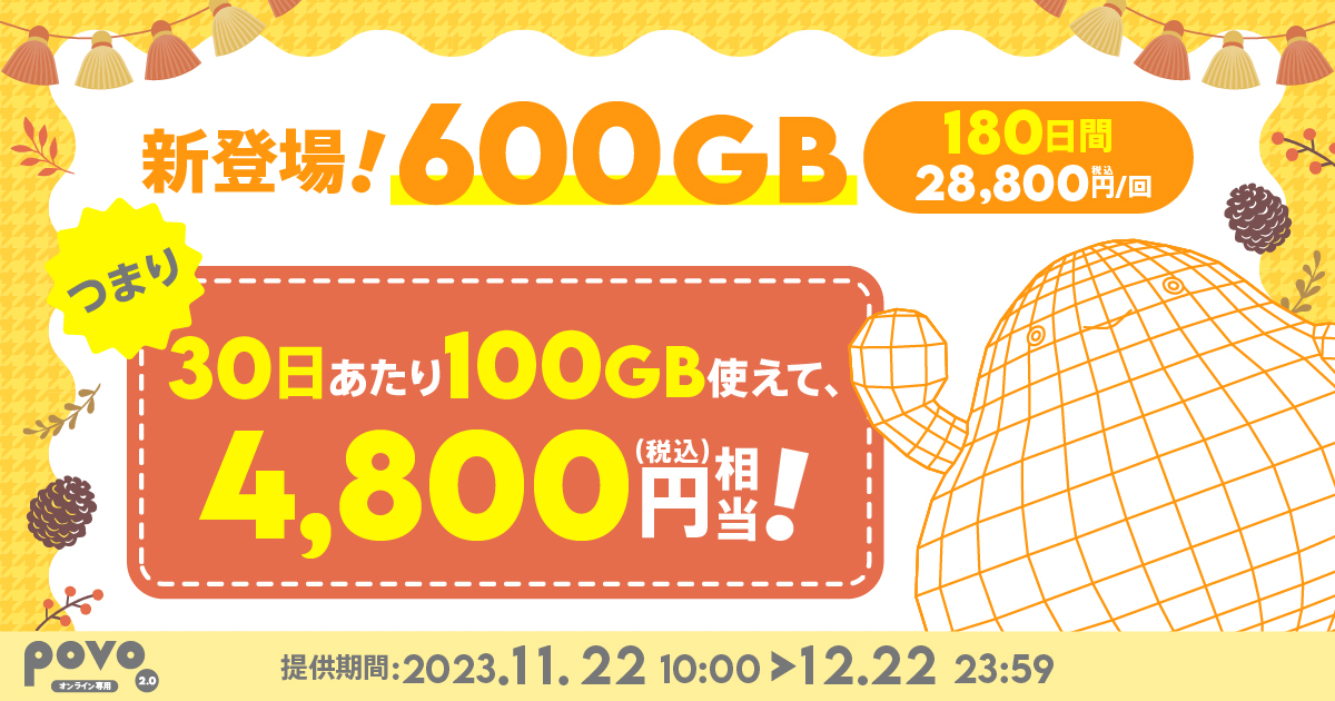「povo2.0」のキャンペーンまとめ【2023年11月号】