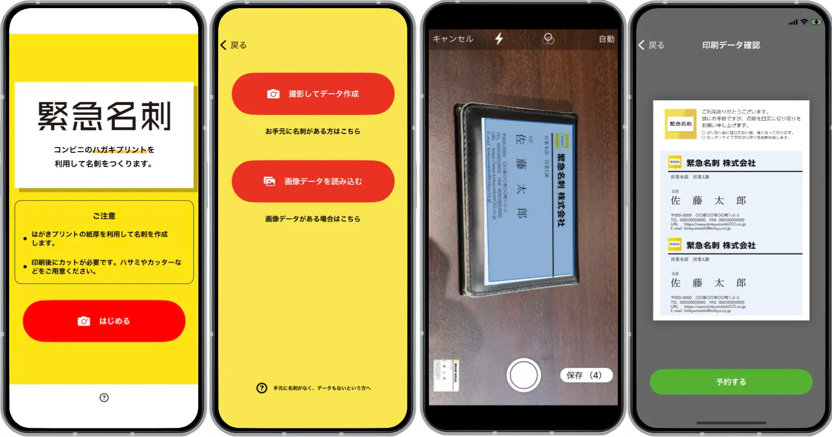 スマホとコンビニで名刺切れを防ぐ「緊急名刺」、名刺2枚で200円