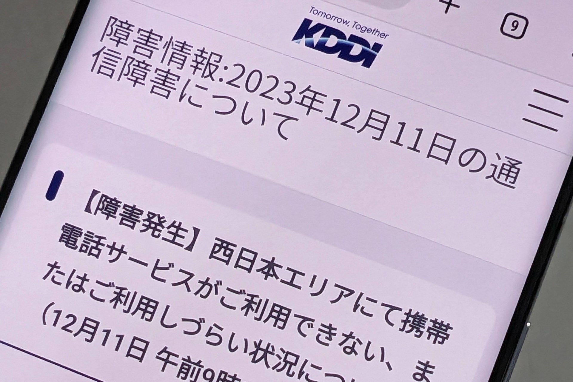 KDDI、11日午前の通信障害が復旧