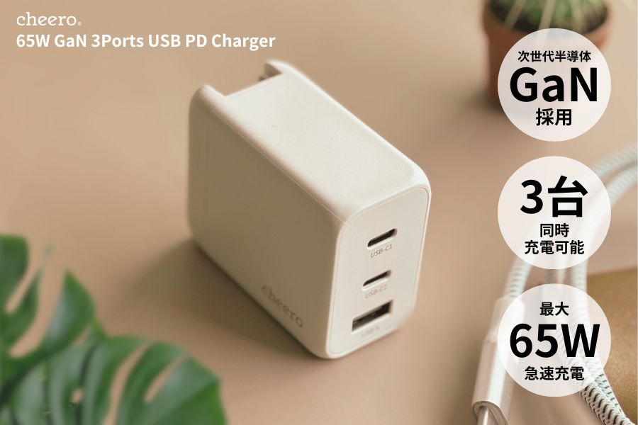 「cheero 65W GaN 3 ports USB PD Charger」に新色ブラック追加、300台限定で記念価格