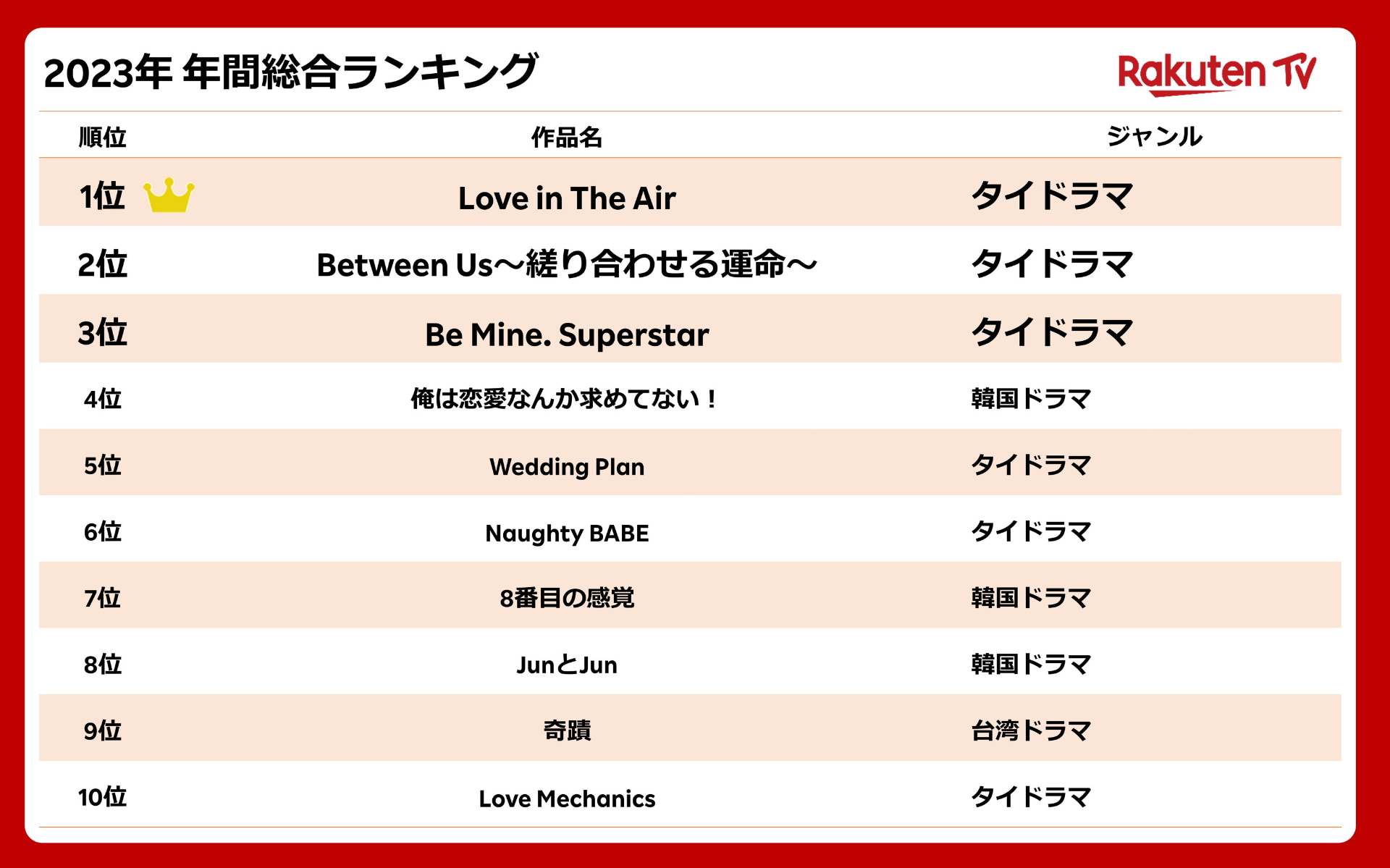 「Rakuten TV」に「アジア映画見放題チャンネル」登場、月880円