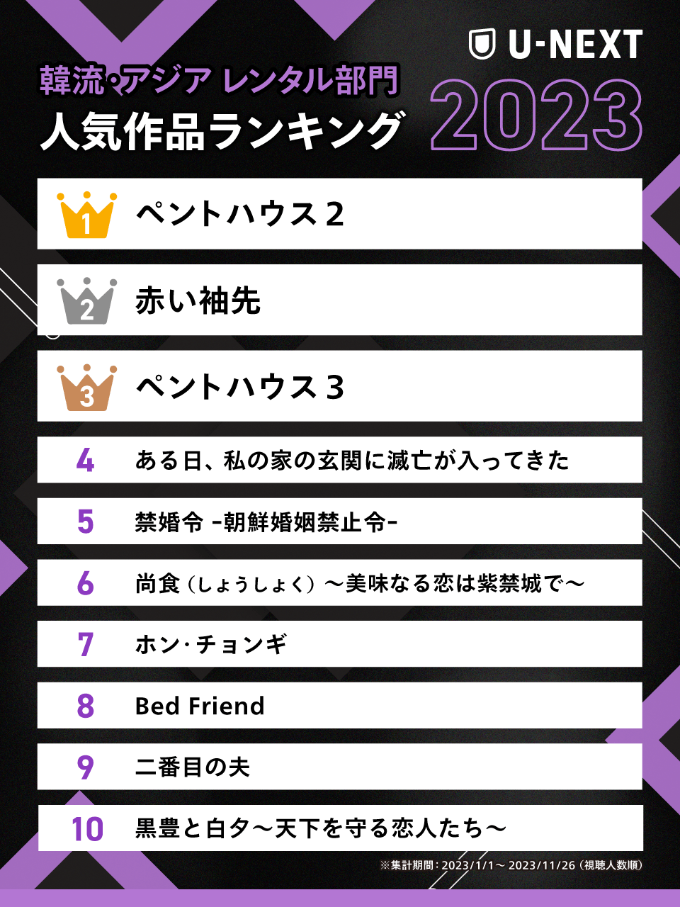U-NEXT、2023年人気作品ランキングを発表(6/9)