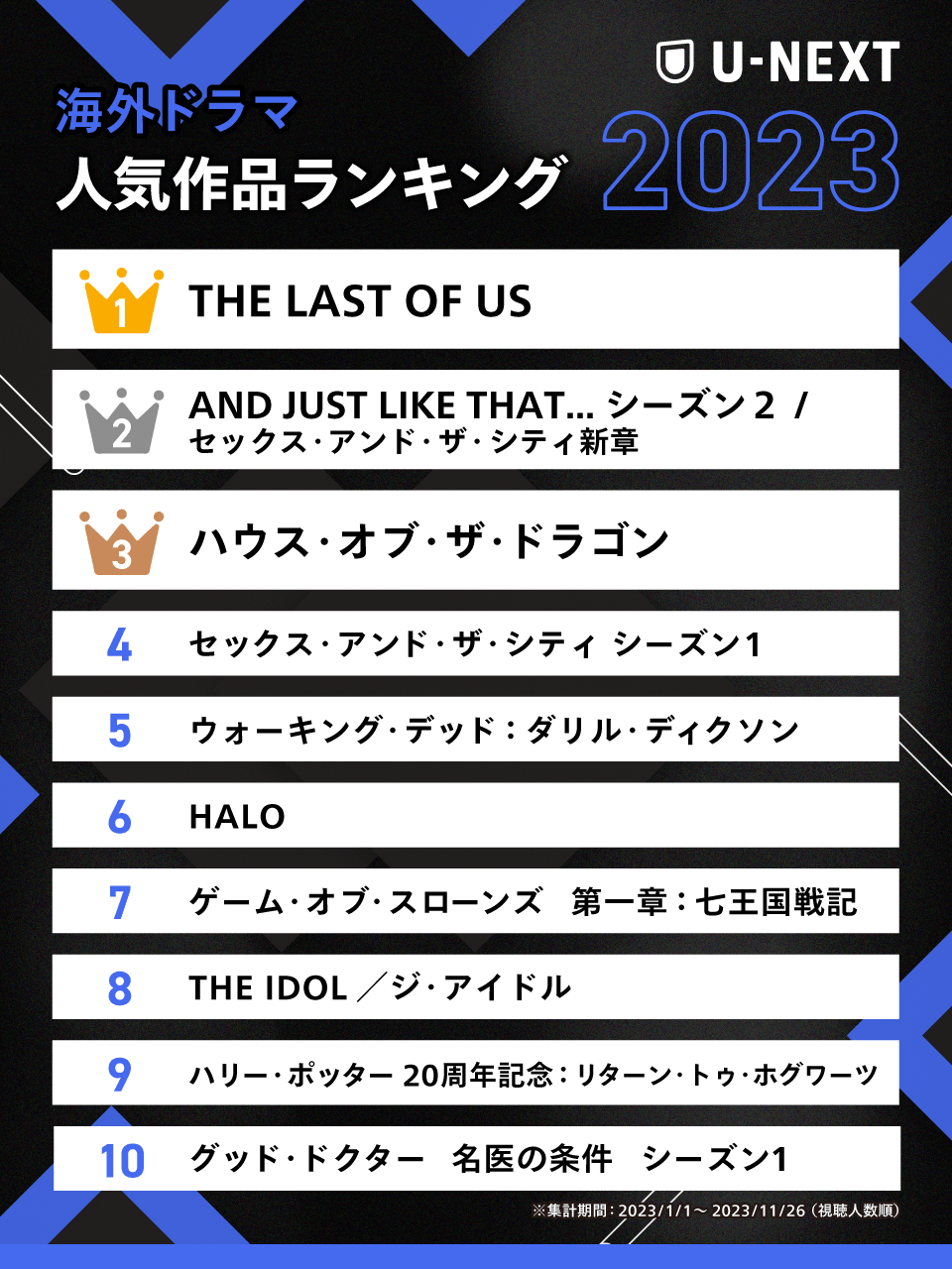 U-NEXT、2023年人気作品ランキングを発表(4/9)
