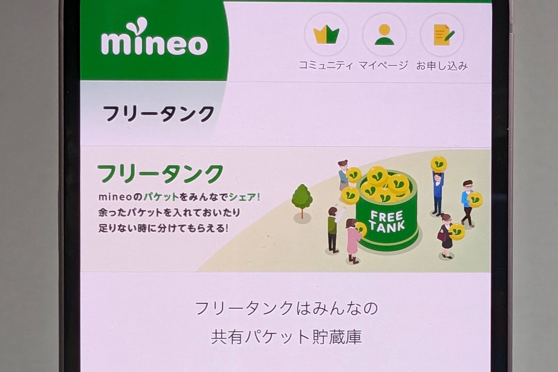 mineo、全ユーザーでパケットをシェアする機能「フリータンク」