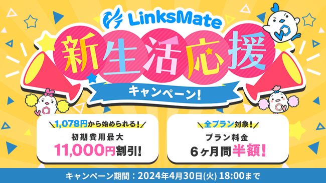 LinksMateで新生活応援キャンペーン、初期費用最大1万1000円割引や6カ月間プラン料金半額