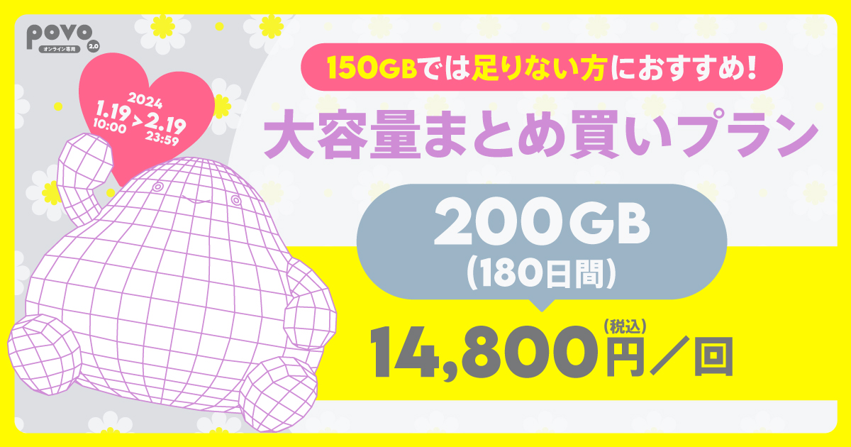 「povo」で"1年60GB”のトッピング、1月末までの限定販売
