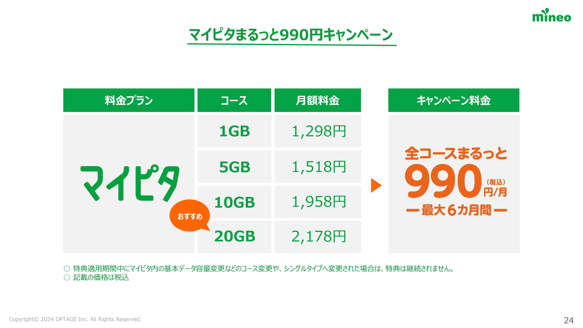 • mineo「マイピタ デュアルタイプ」全コースが最大6カ月間990円/月になるキャンペーン