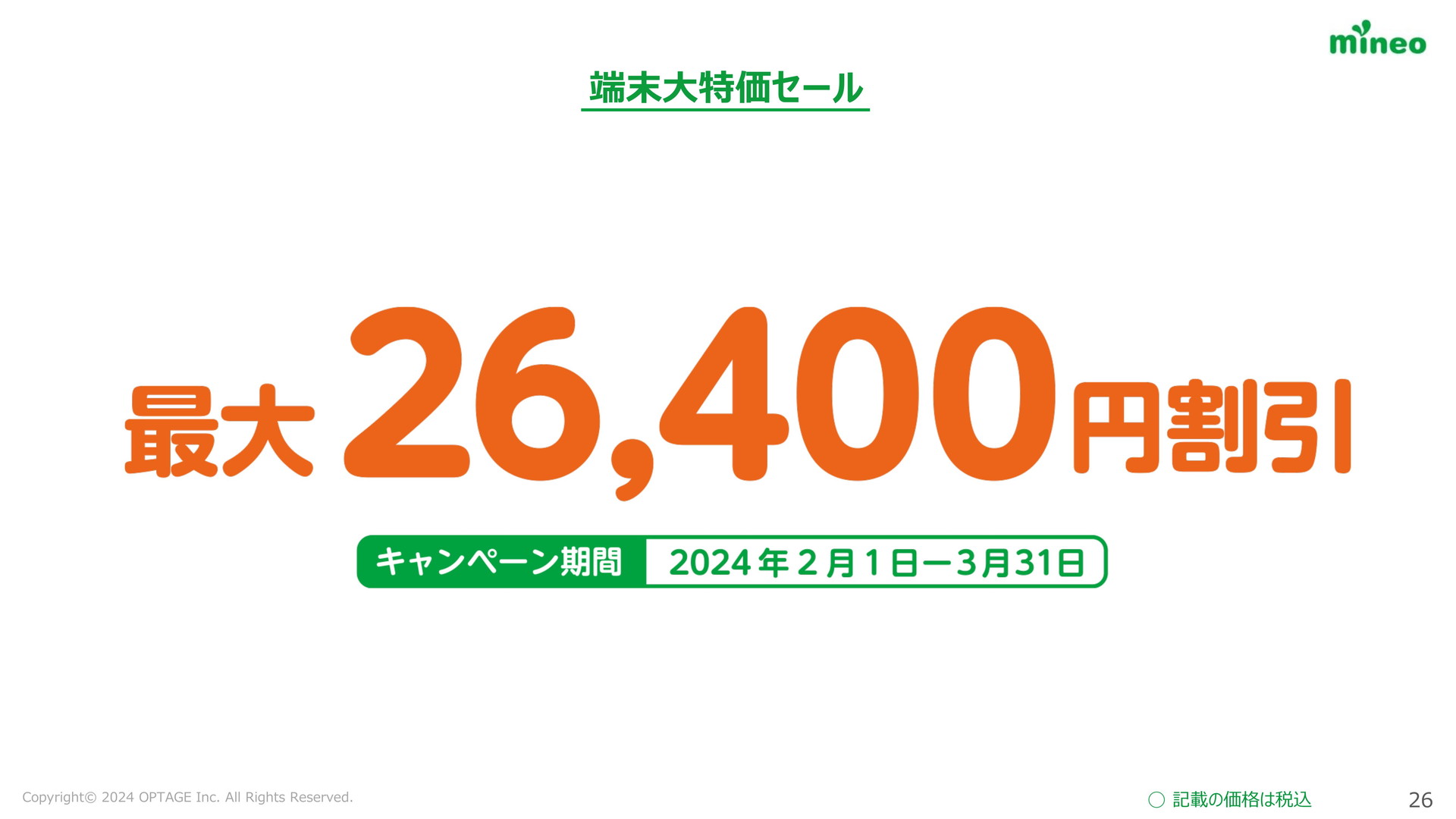 • mineoで最大2万6400円オフの「端末大特価セール」、2月から
