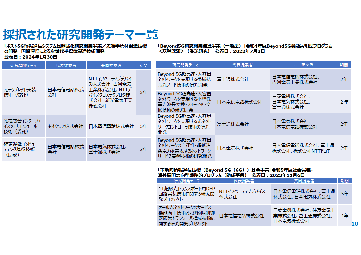 次世代ネット「IOWN」向け半導体「光チップ」など、国立法人NEDOの開発事業に採択(4/24)