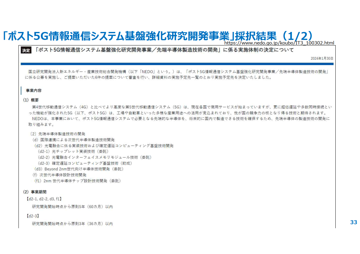 次世代ネット「IOWN」向け半導体「光チップ」など、国立法人NEDOの開発事業に採択(12/24)