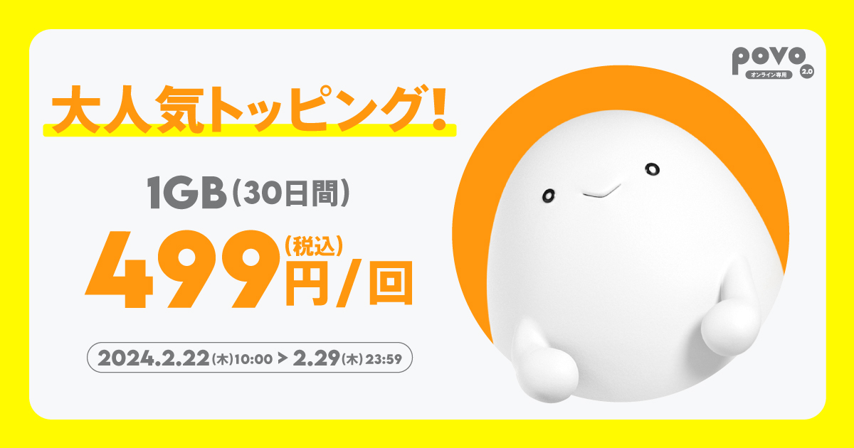 「povoジャンボ」トッピング購入で最大500GBが当たる