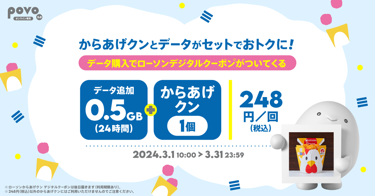 povo、「データ使い放題(24時間)」購入でもう1つもらえるキャンペーン