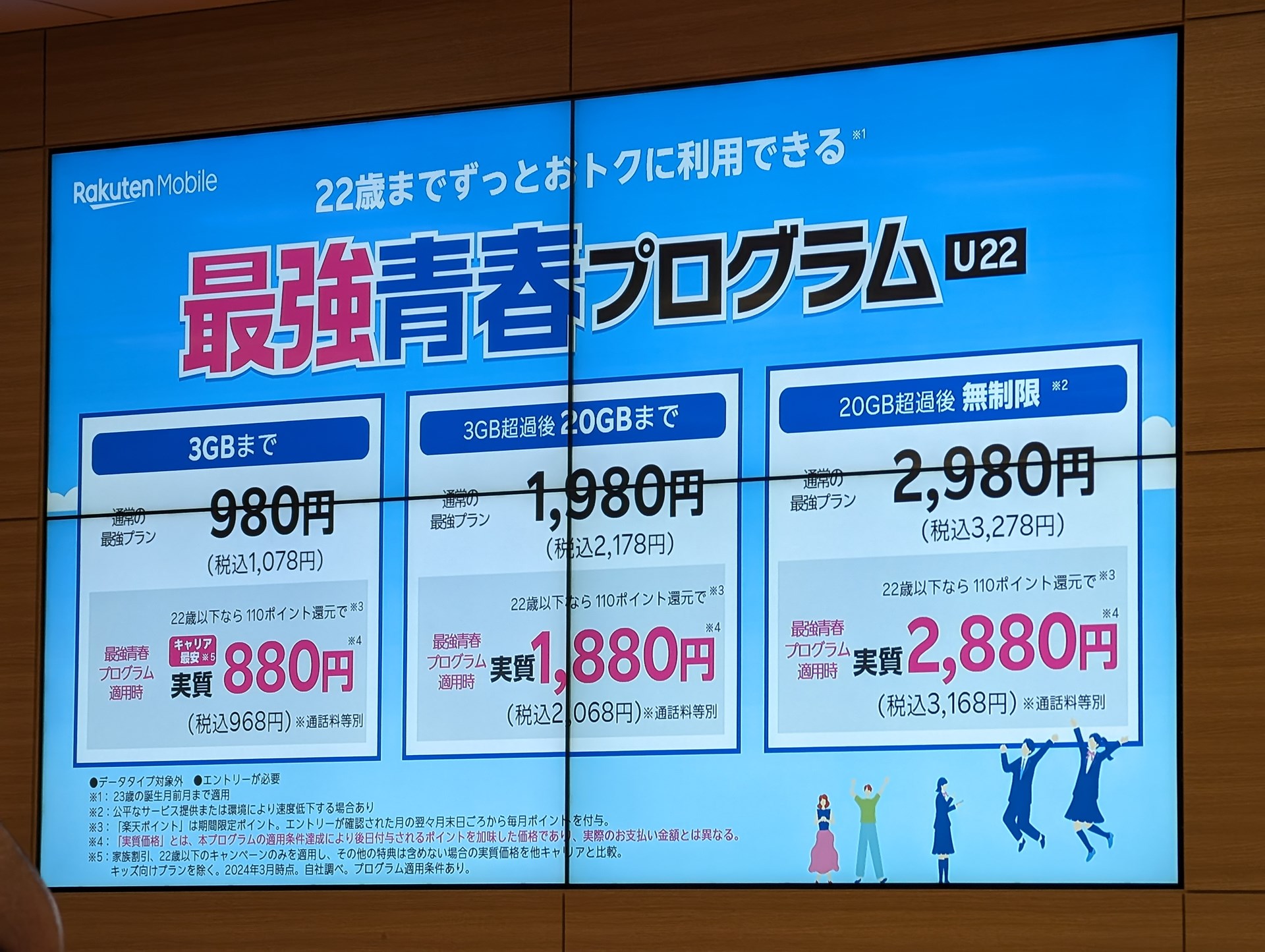 • 楽天モバイル「最強青春プログラム」の対象年齢変更、0歳以上→13歳以上に