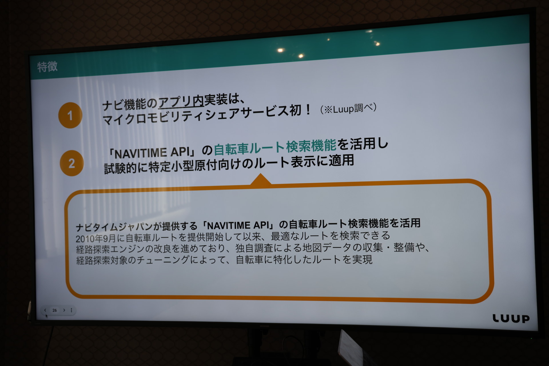 「LUUP」に特定小型原付向けのナビ機能、都内で3月最終週に試験提供開始――大通りを避けて歩道走行を抑止するねらいも(12/15)