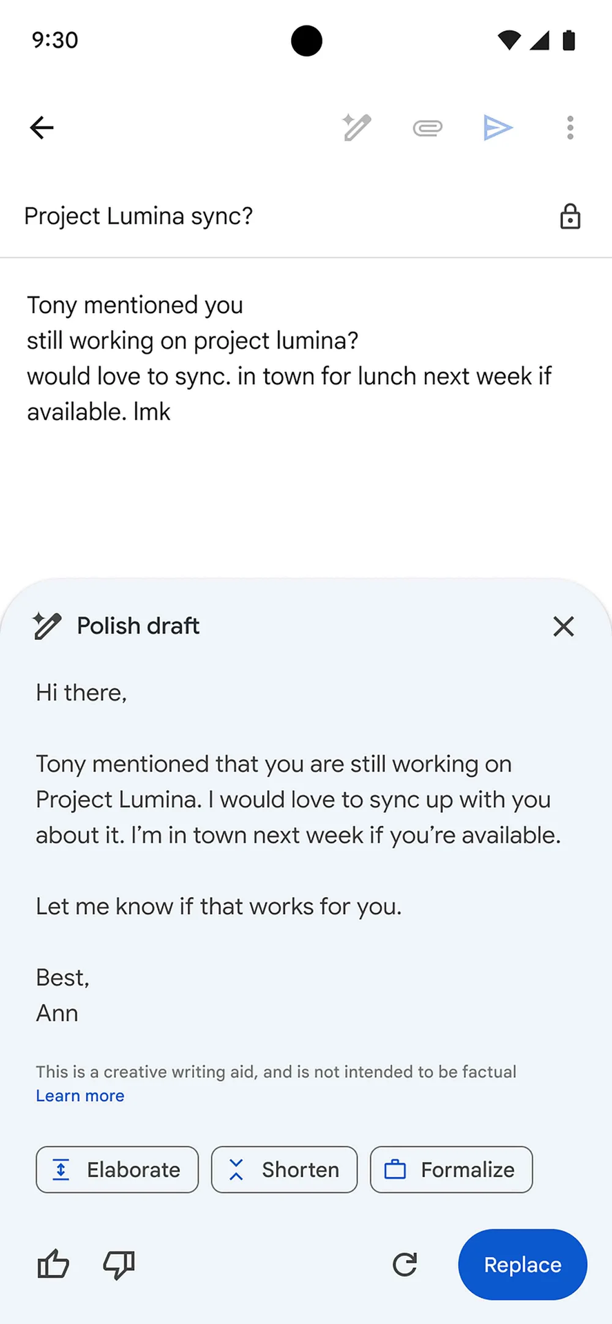 グーグル最新AI「Gemini」でGmailを使うとAIが本文を書いてくれる――MWCで披露されたグーグル最新技術