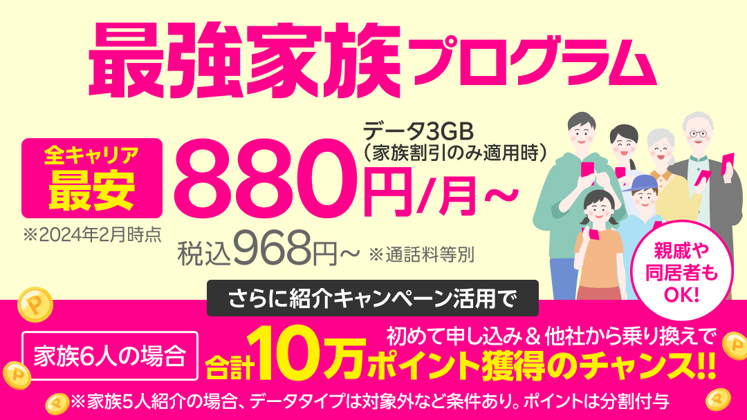 楽天モバイルの「最強家族プログラム」が「代表者の年齢制限なし」「1人あたり10回線まで」に変更