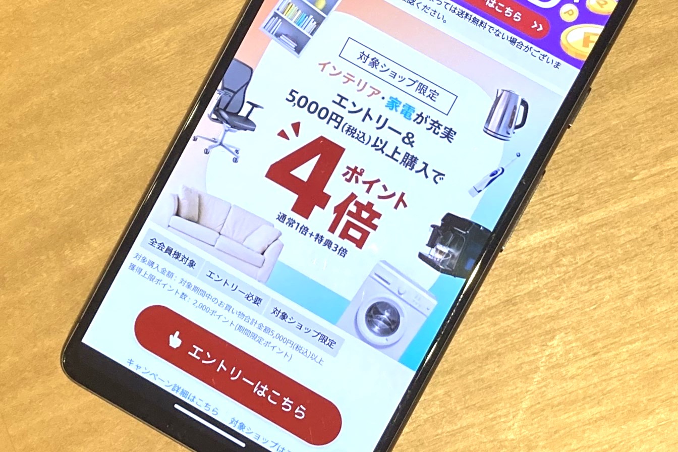 「楽天市場お買い物マラソン」で楽天ビックなど対象店舗でポイント4倍還元、AppleやGoogleのギフトカードも対象