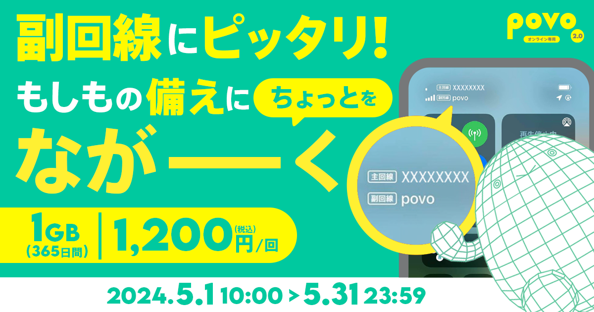 povoで「データ使い放題(7日間)12回分」と「データ追加300GB(90日間)」が登場、1カ月あたり3278円