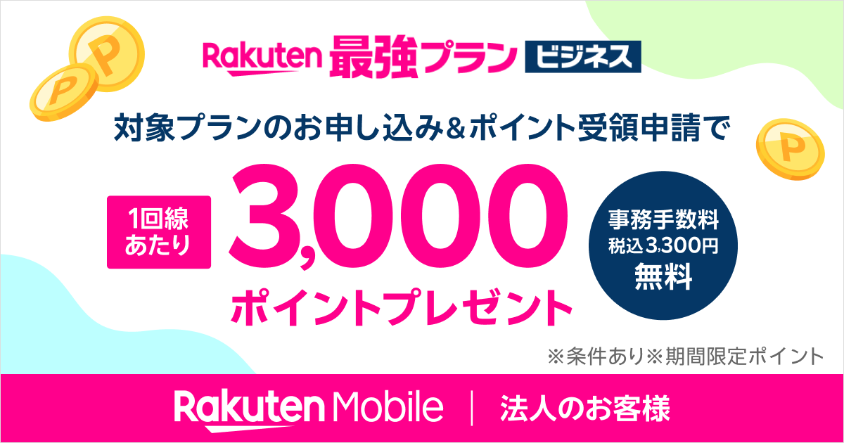 楽天モバイル、資料請求で2000ポイントが当たる法人向けキャンペーン