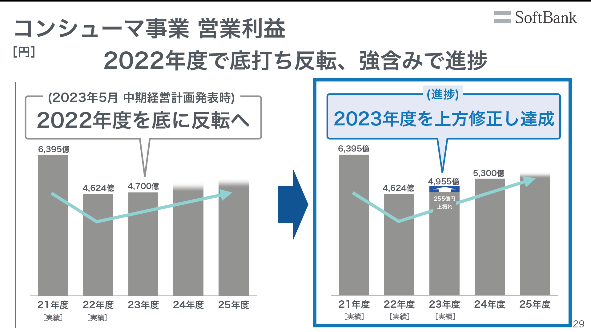 ソフトバンク2023年度の決算、コンシューマー事業で増収を達成――宮川社長「ようやく」、榛葉氏「当然うれしい」(24/59)