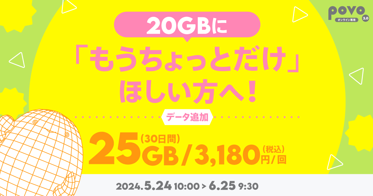 povoで月末セール、「1GB(30日)」499円と25GB増量キャンペーン