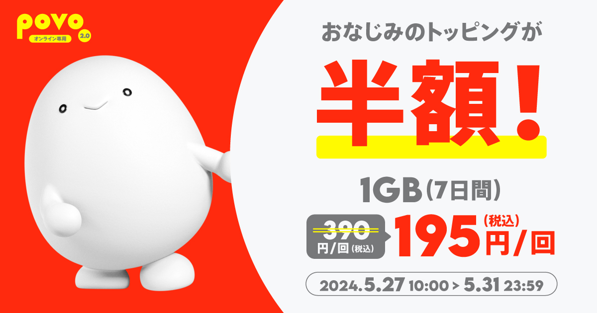 povoで「300GB(365日)」の期間限定トッピング、6月24日まで