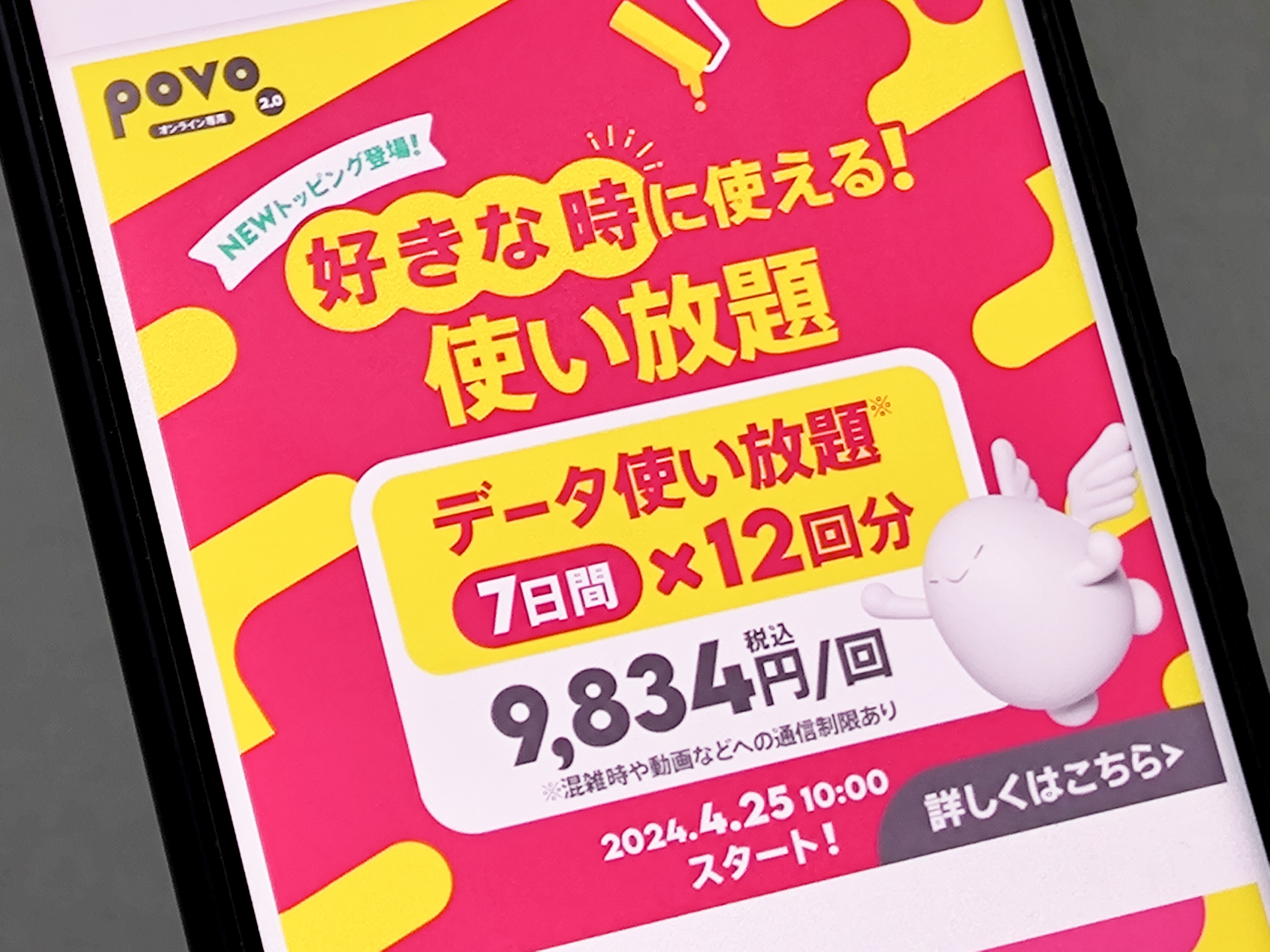 povoで「データ使い放題(7日間)12回分」と「データ追加300GB(90日間)」が登場、1カ月あたり3278円
