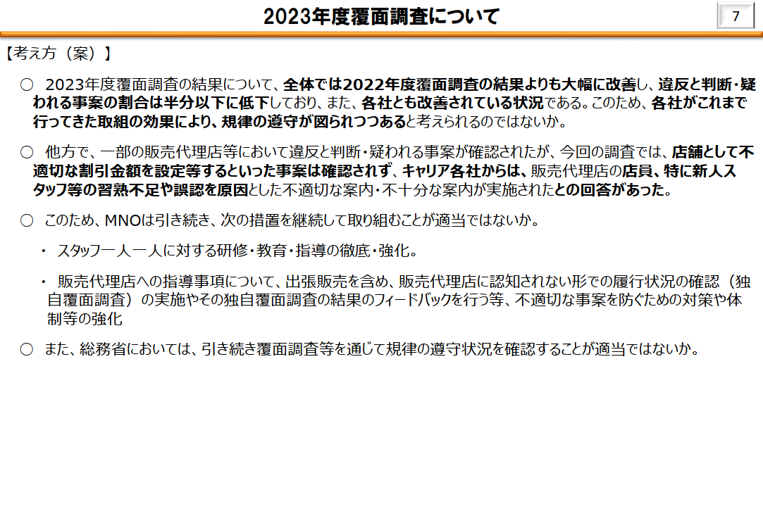 • 総務省WG「キャリアショップ覆面調査」での違反事例を紹介、「回線契約がないと売れない」「契約があると割引が上乗せできる」など