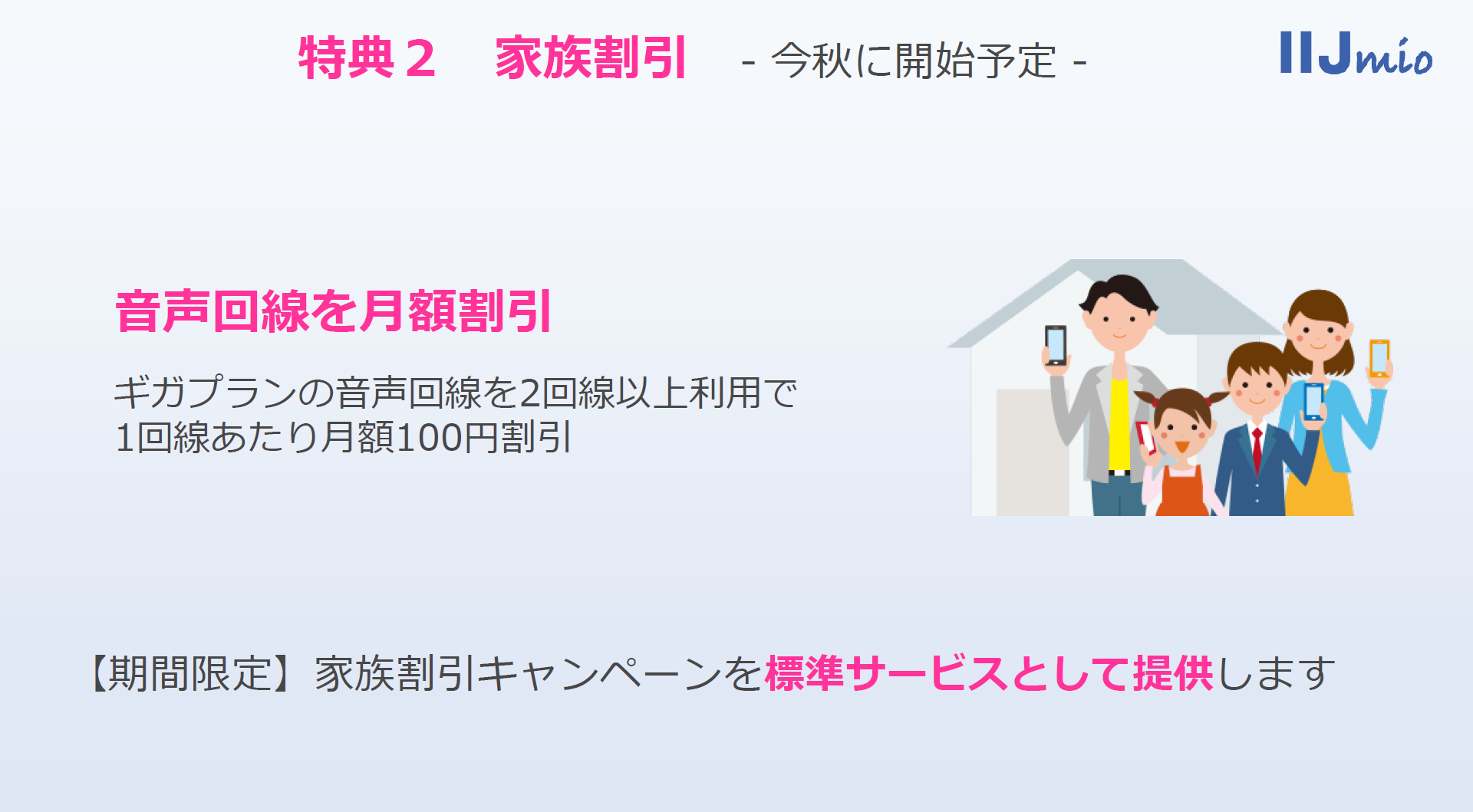 • IIJmioの「家族割引」が本日スタート、対象回線は月額100円を割引