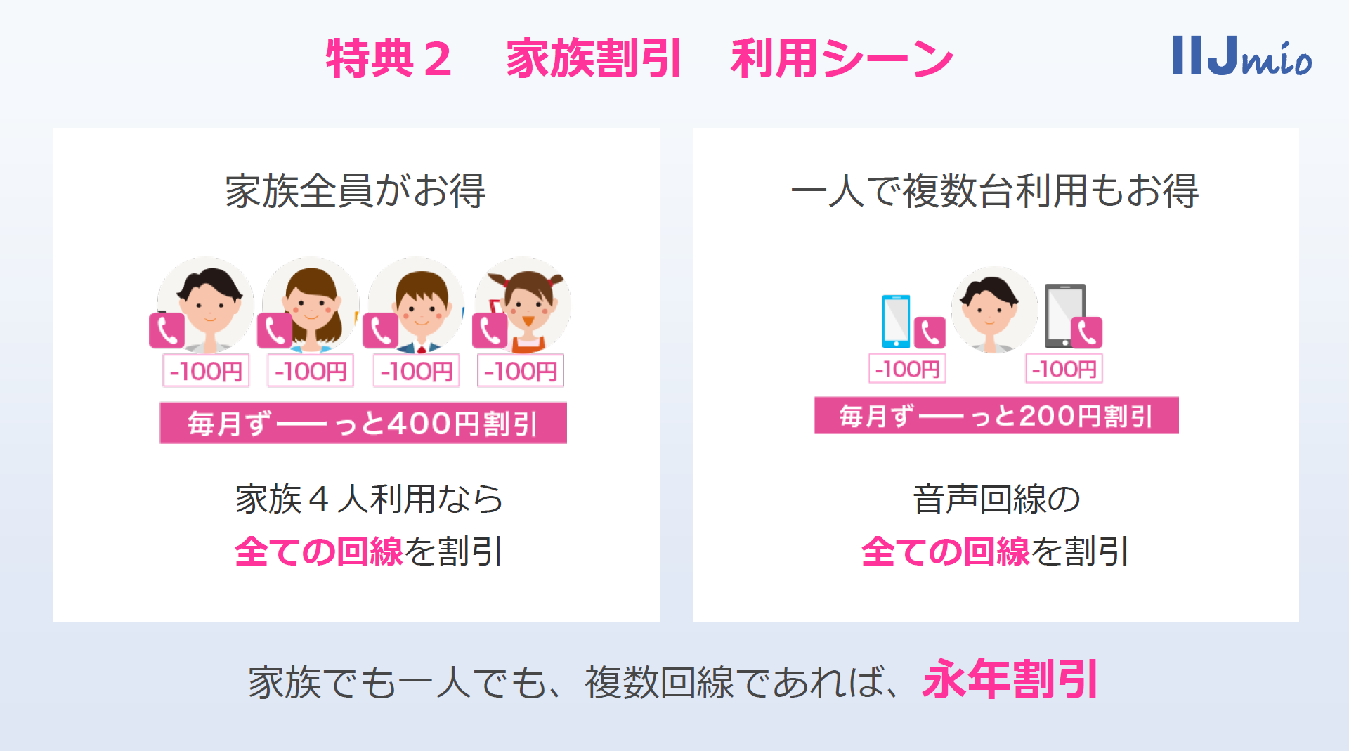 • IIJmioの「家族割引」が本日スタート、対象回線は月額100円を割引