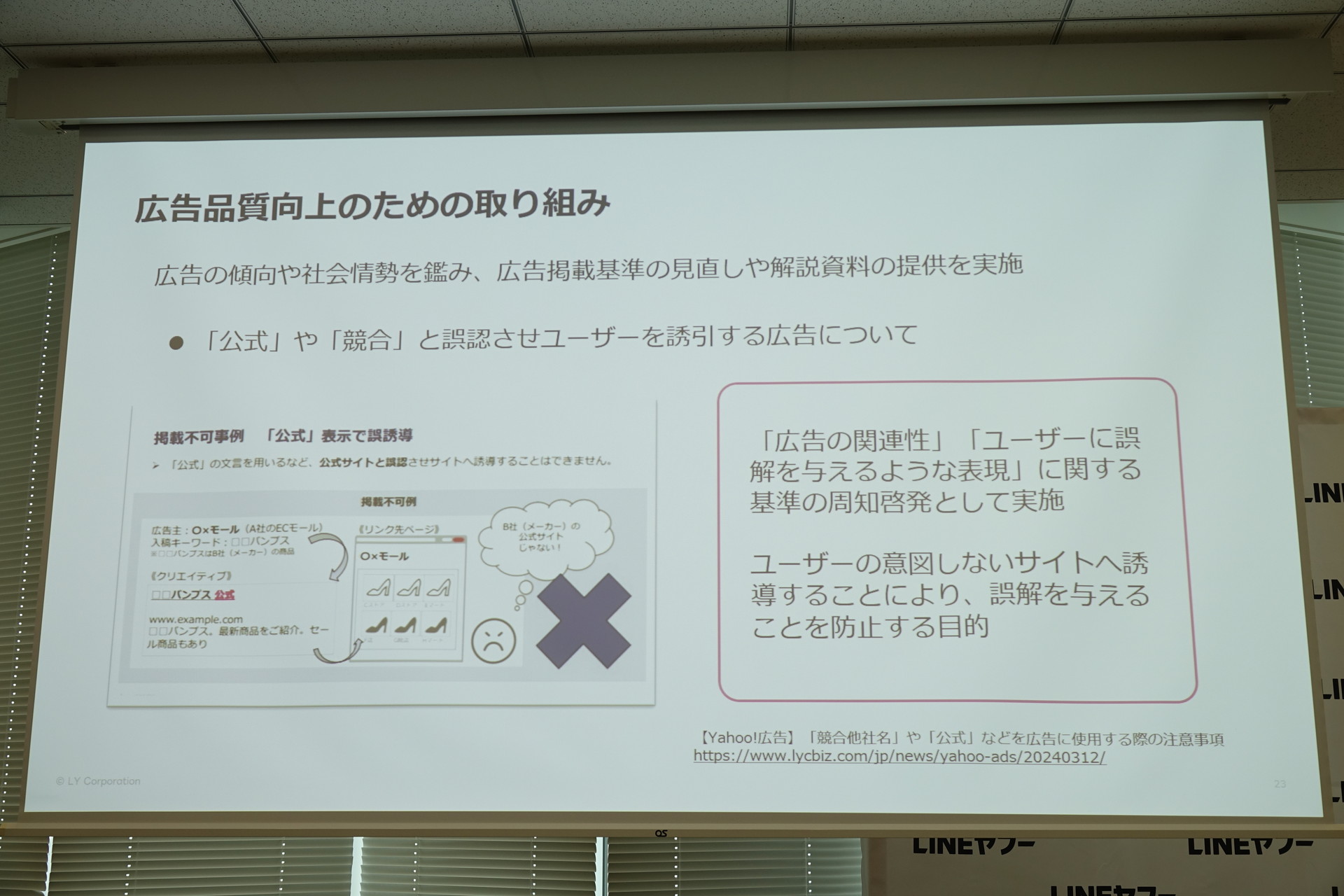 Web広告の信頼性の保ち方、LINEヤフーが「なりすまし広告」への対処など説明(21/24)