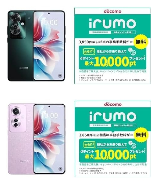 「OCN モバイル ONE」→「irumo」の移行特典はじまる、スマホ購入で最大3万7000ポイント