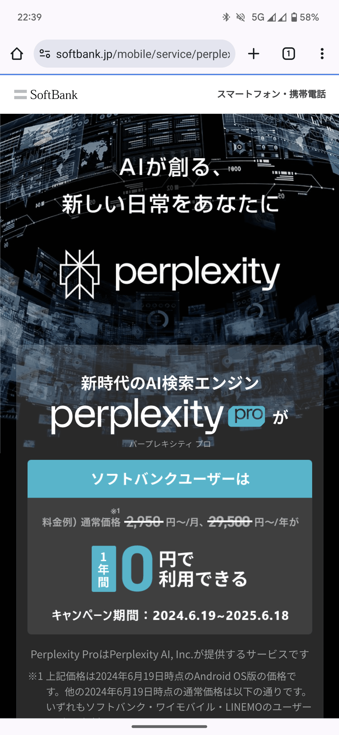 ソフトバンク「Perplexity Pro」を一部ユーザー限定で半年無料キャンペーン