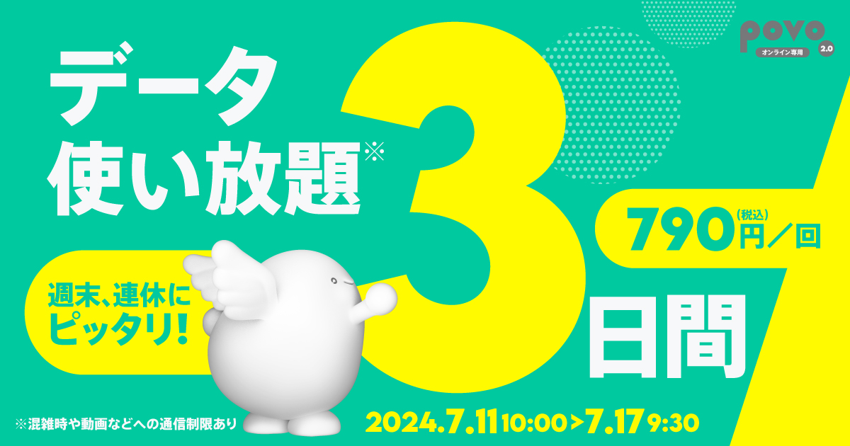 楽天モバイルの料金プランに“待った”をかける、povoの新たな「使い放題(7日間)12回分」「300GB(90日間)」徹底解説