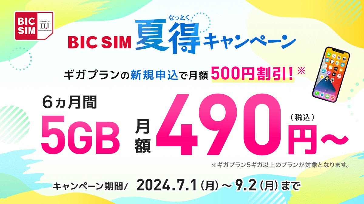「BIC SIM」、初月無料や1万ポイント付与のキャンペーン iPhoneの1.5万円引きも