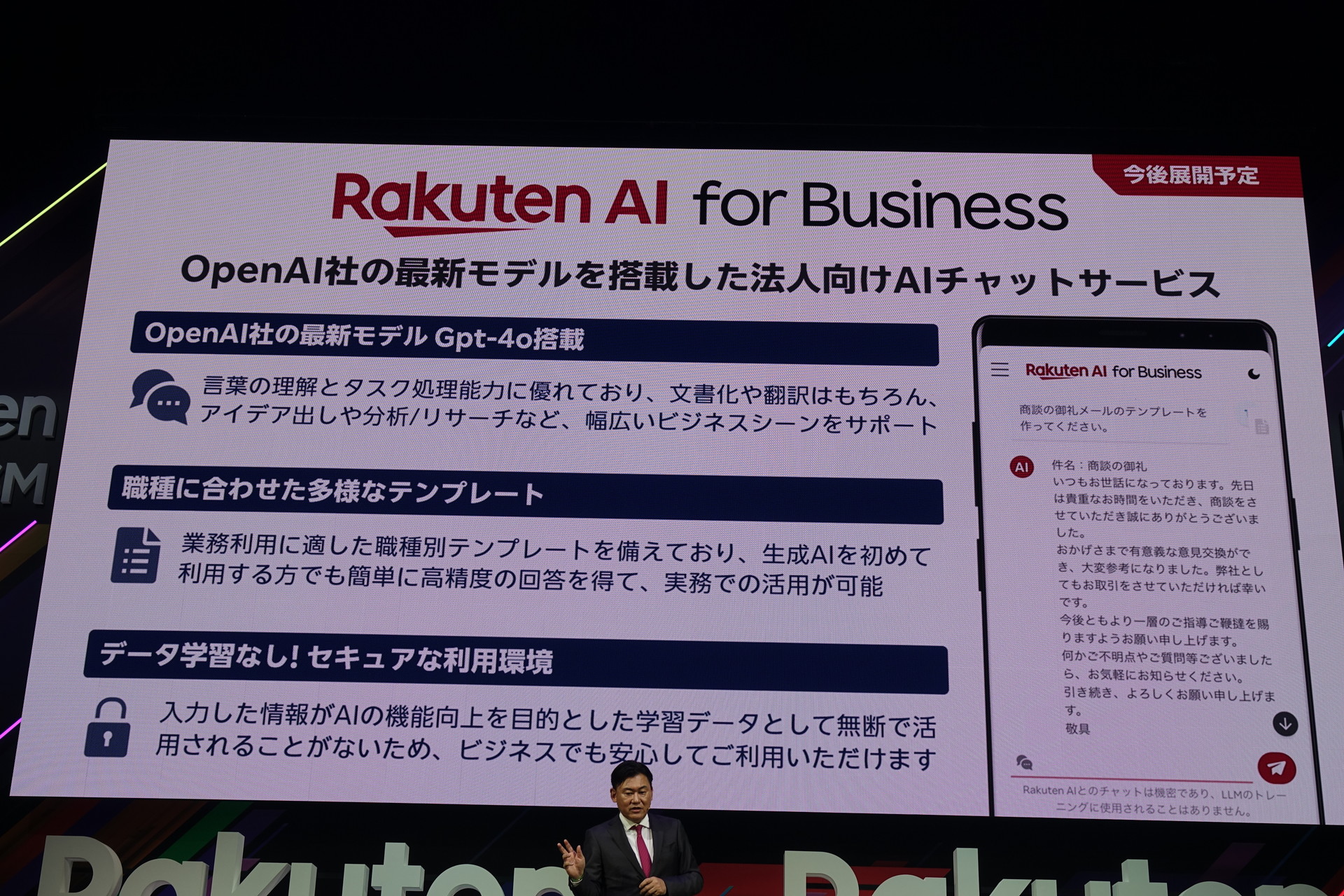 • 楽天モバイル、法人向けにGPT-4ベースのチャット型生成AIサービス提供へ