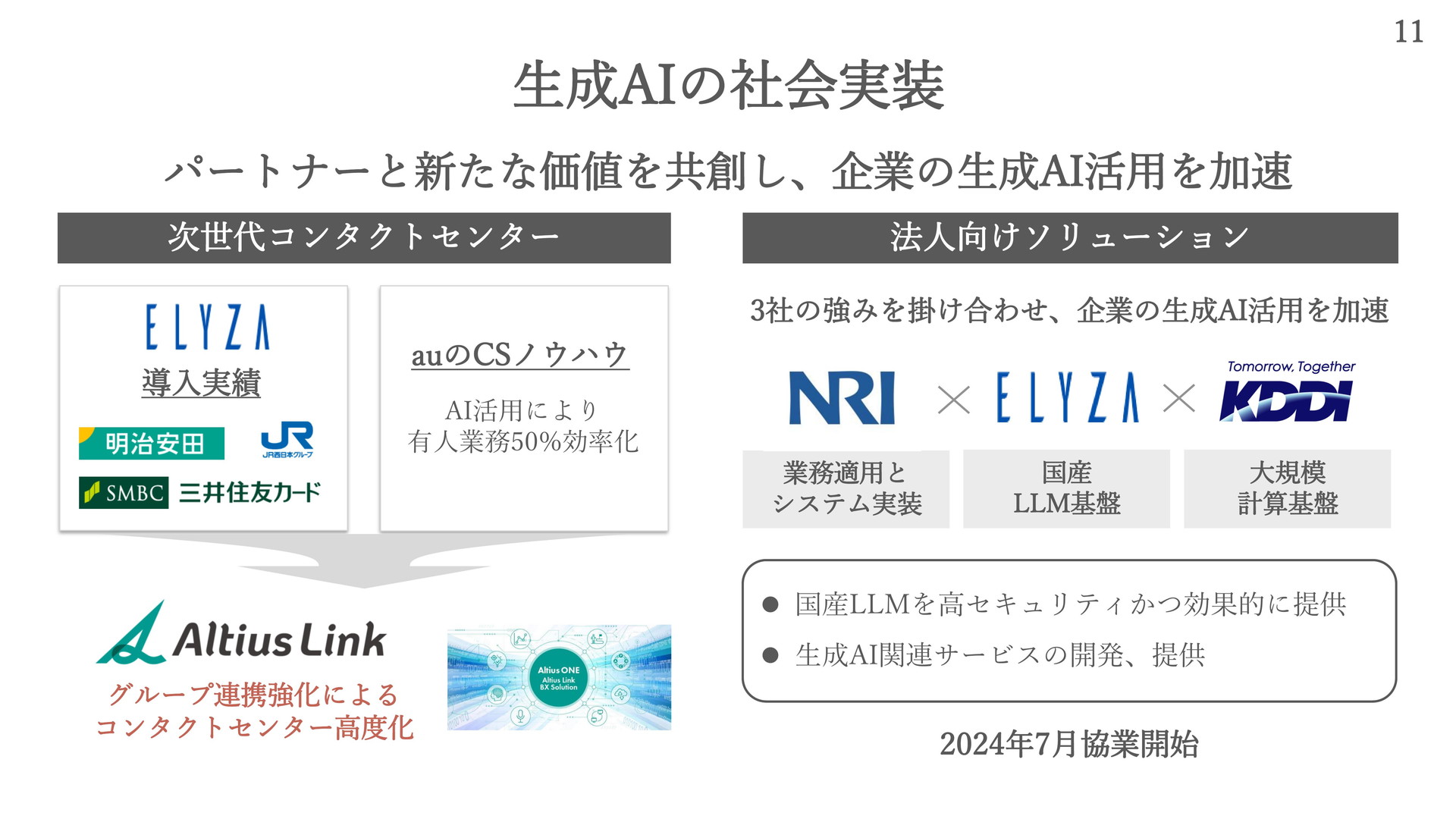 • 生成AIの社会実装を加速へ、KDDIとELYZAが連携して日本語LLM提供