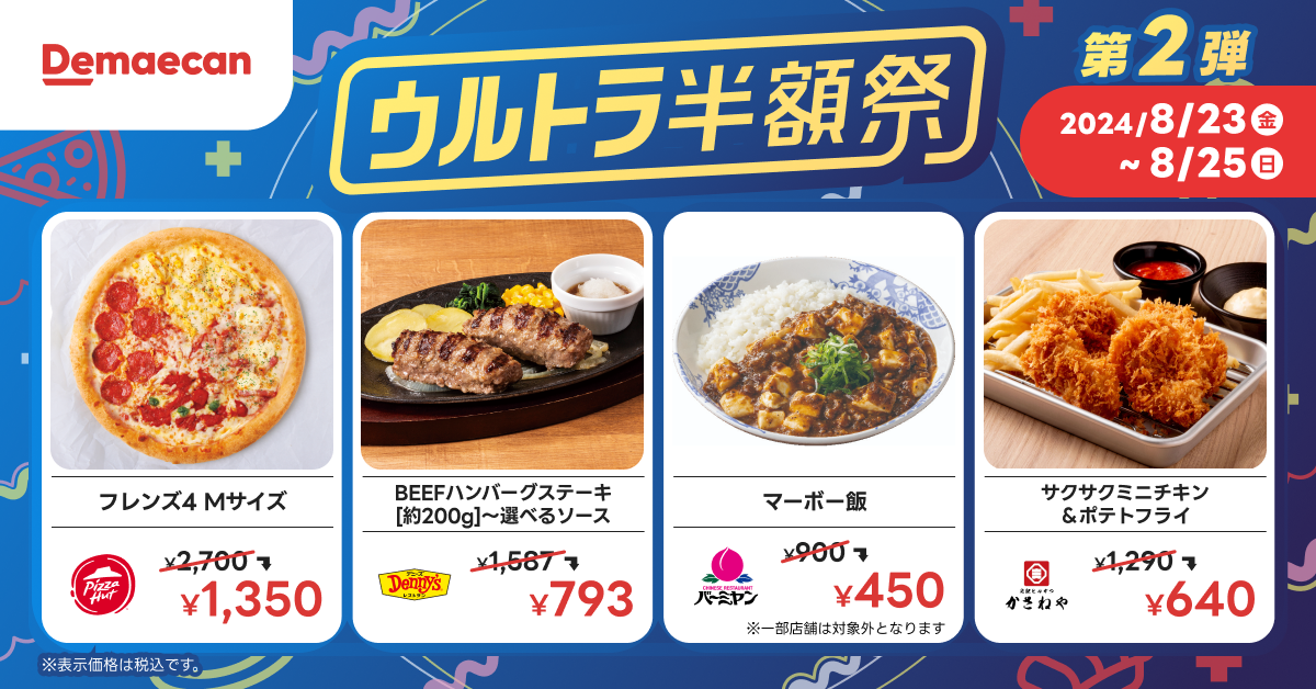 出前館でd払い“全額還元”キャンペーン、抽選で最大+100%還元