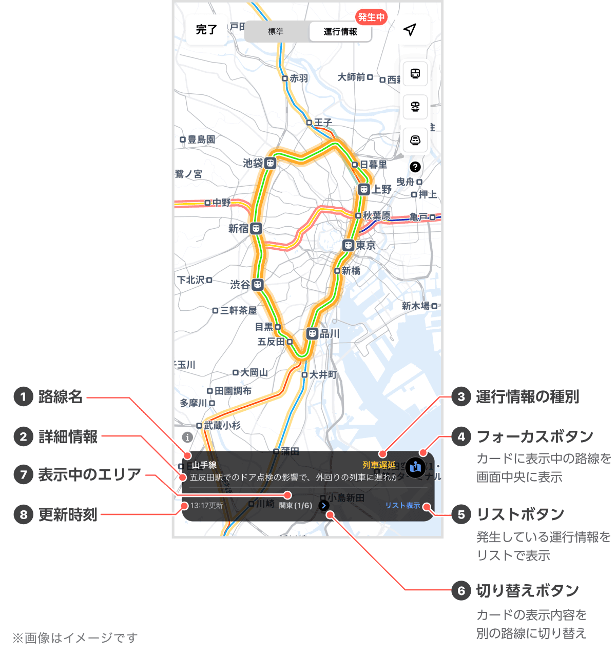 iPhone向け「Yahoo!乗換案内」、列車アイコンが地図上で動く新機能「トレインキャスト」