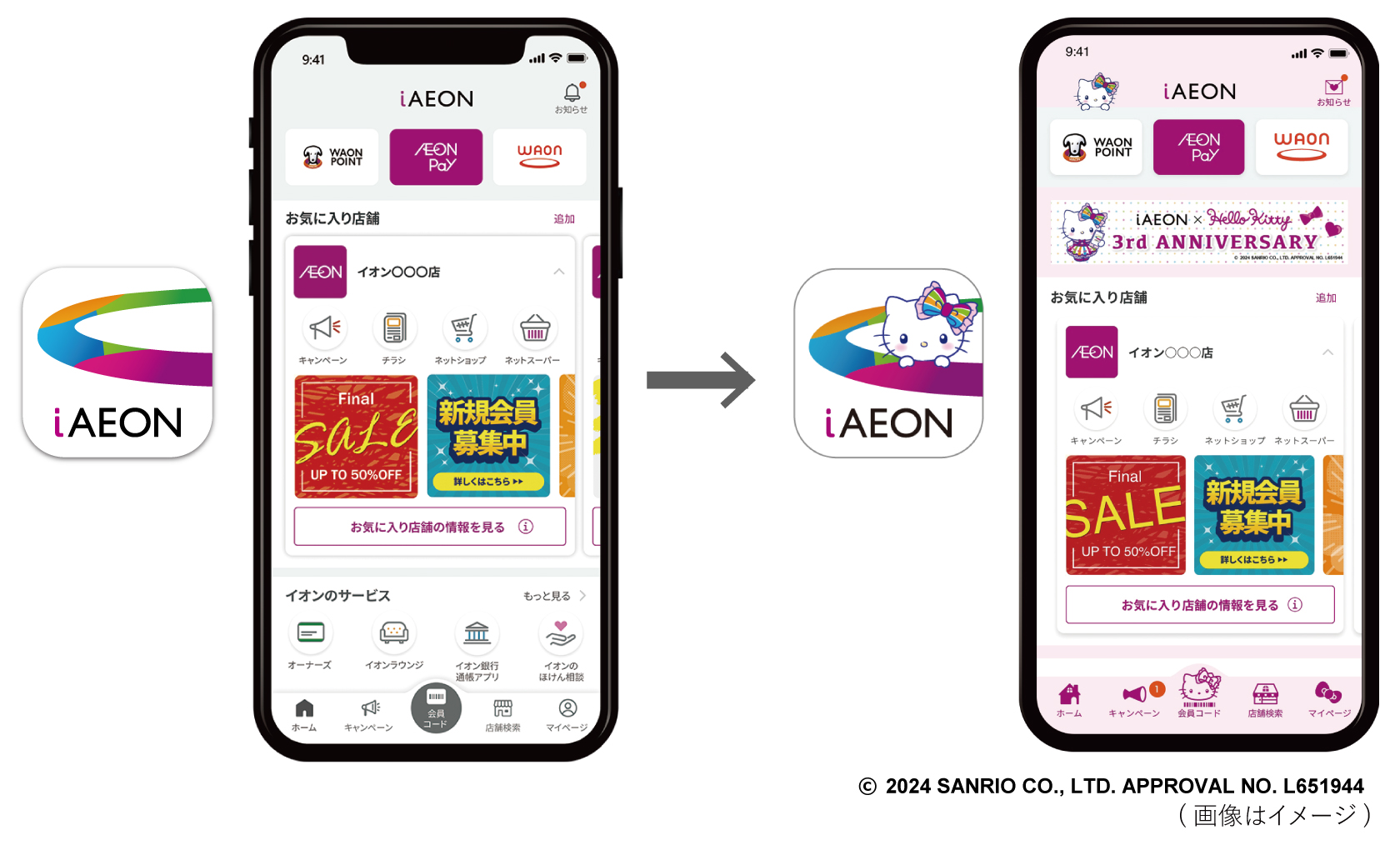 「iAEON」3周年のキャンペーン開催、ハローキティとコラボ(4/7)