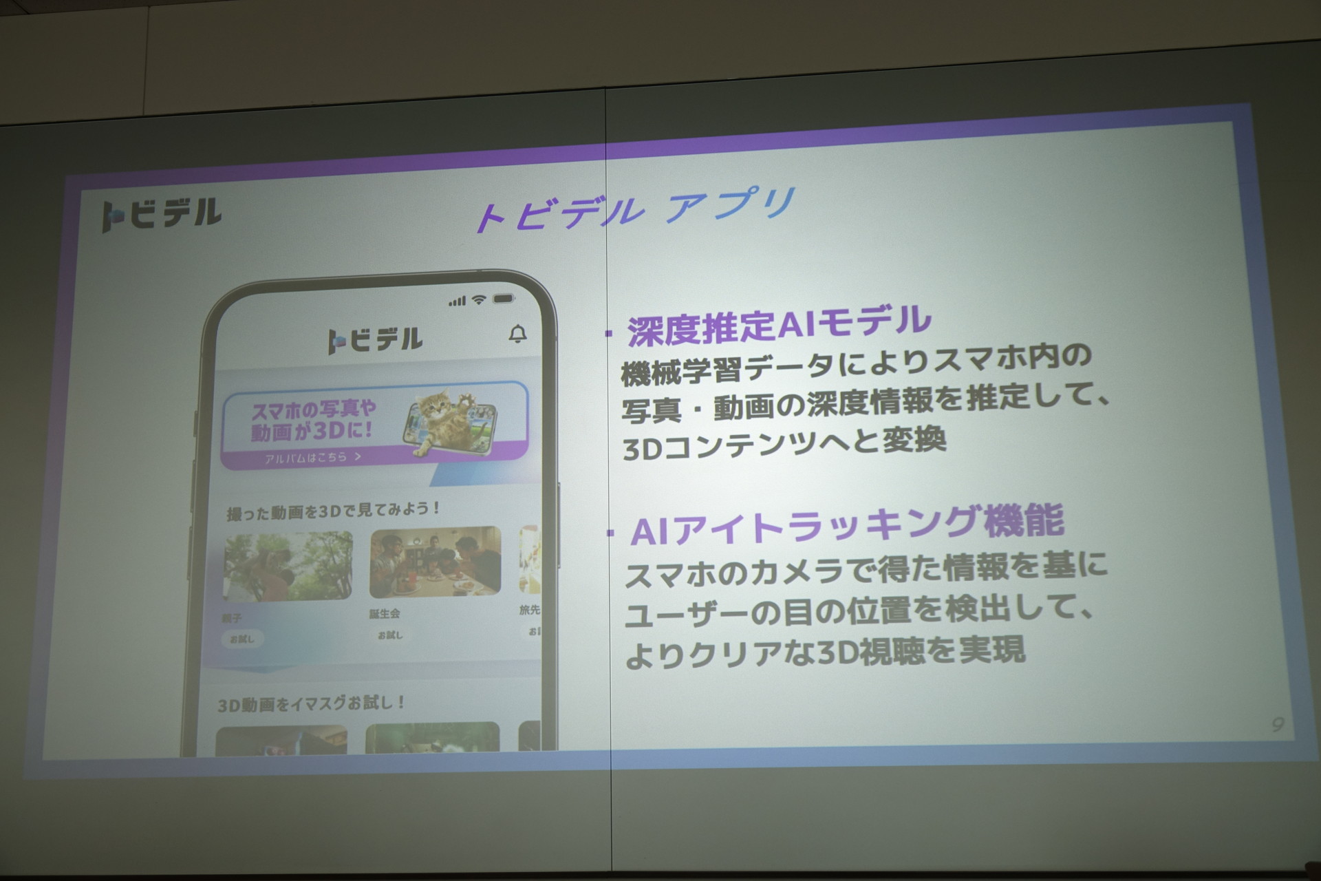ソフトバンク、裸眼で3Dを楽しめる「トビデル」 撮影した写真・動画を3Dに(15/18)