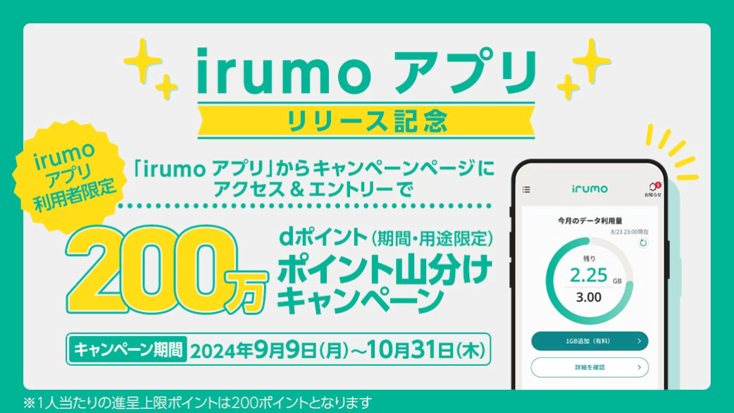 irumo、SIMのみ契約で最大1万7000ポイントを進呈
