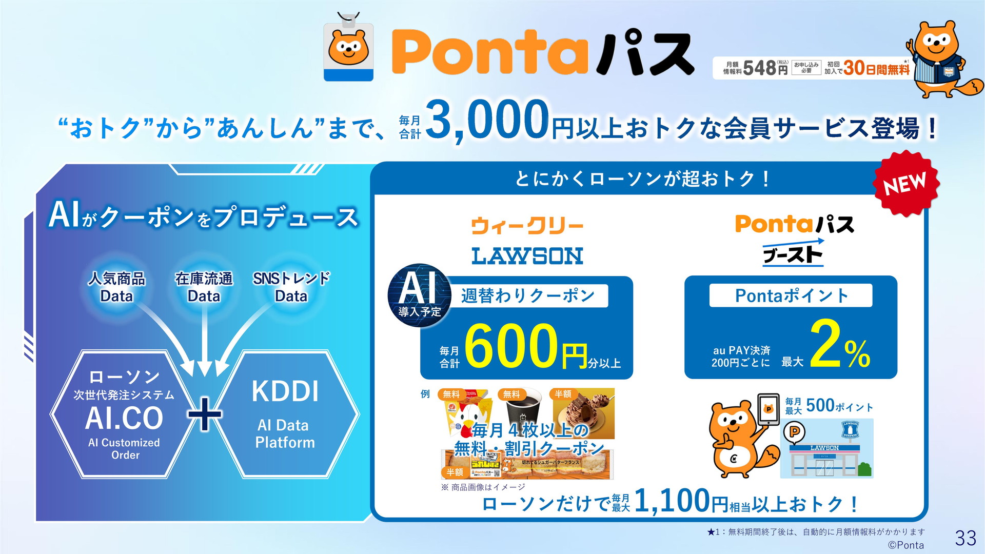 • auスマートパスが「Ponta パス」に、ローソンで使えるクーポン配布やポイント還元率アップ