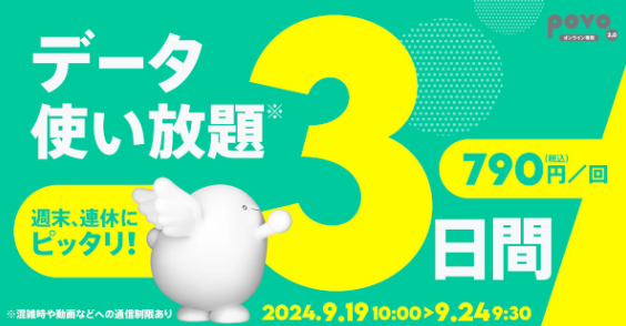 povo2.0で3日間データ使い放題の限定トッピング 790円/回(1/1)