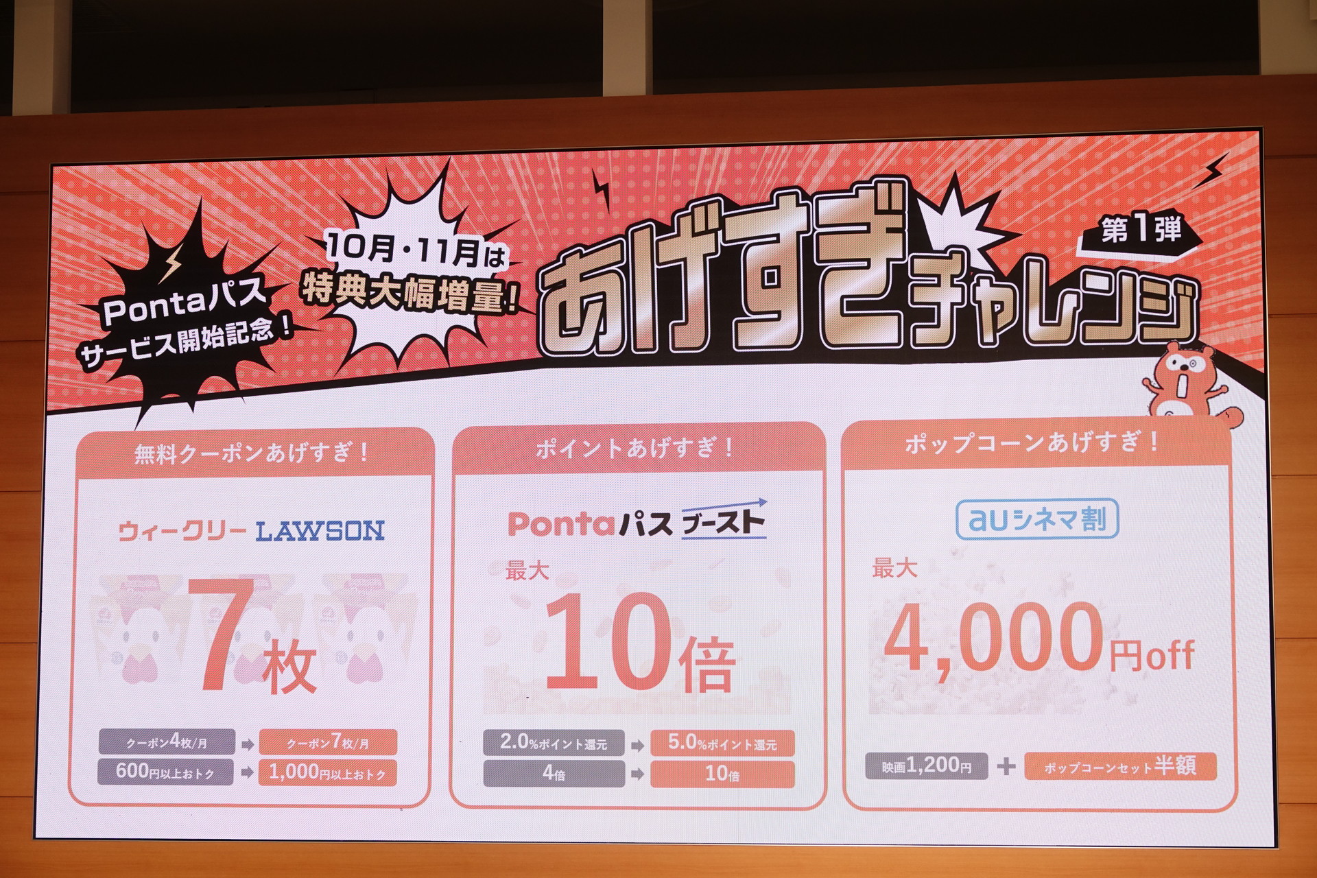 • 「Pontaパス」会員向けにポイント10倍などの「あげすぎチャレンジ」、10月2日~